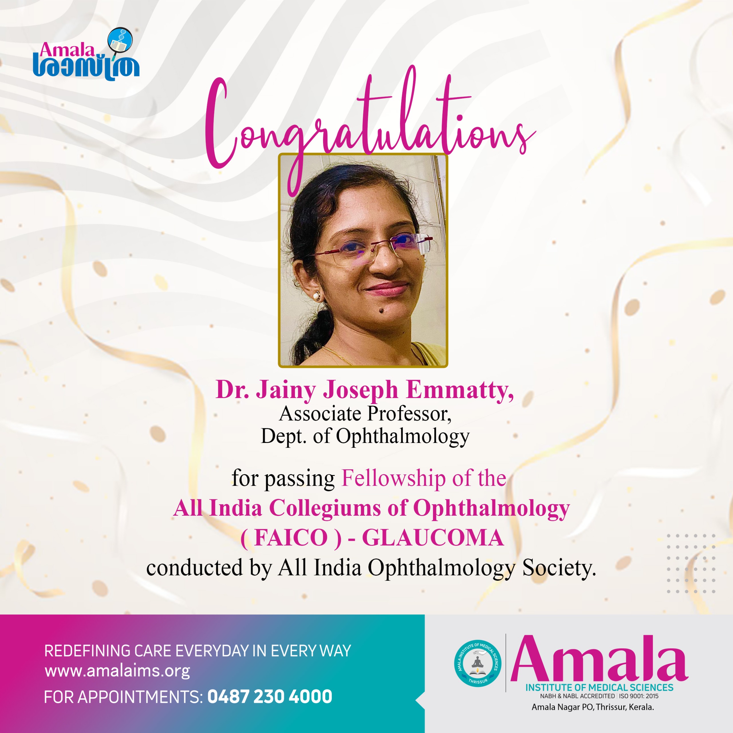 Dr.Jainy Joseph Emmatty-Passing Fellowship of the All India Collegiums of Ophthalmology (FAICO)-Glaucoma