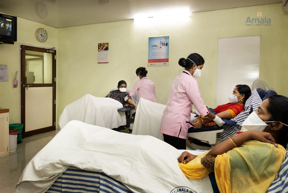 Amala Blood Centre has facilities which provides a safe, hygienic blood donation enviornment- both inhouse and at outside hospital blood donation camps.